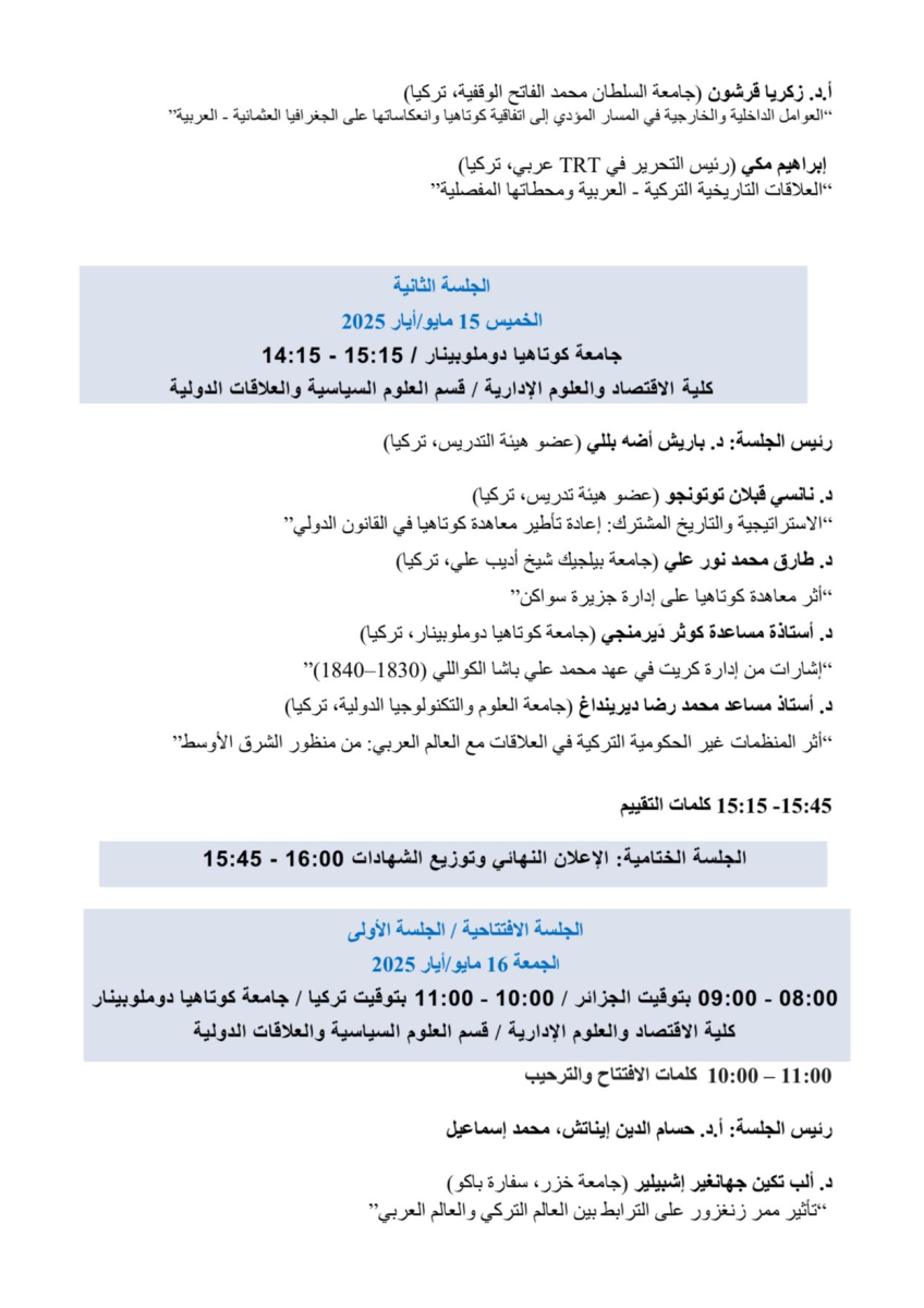 المؤتمر الدولي: من معاهدة كوتاهية إلى يومنا هذا - العالم التركي والجغرافيا العربية