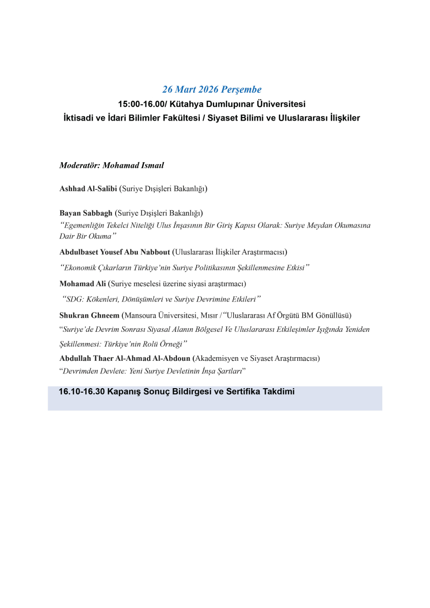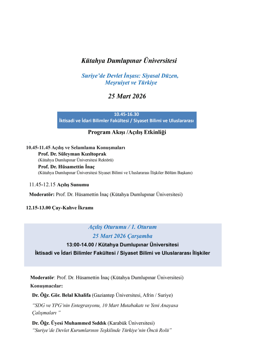 Suriye‘de Devlet İnşası: Siyasal Düzen, Meşruiyet ve Türkiye